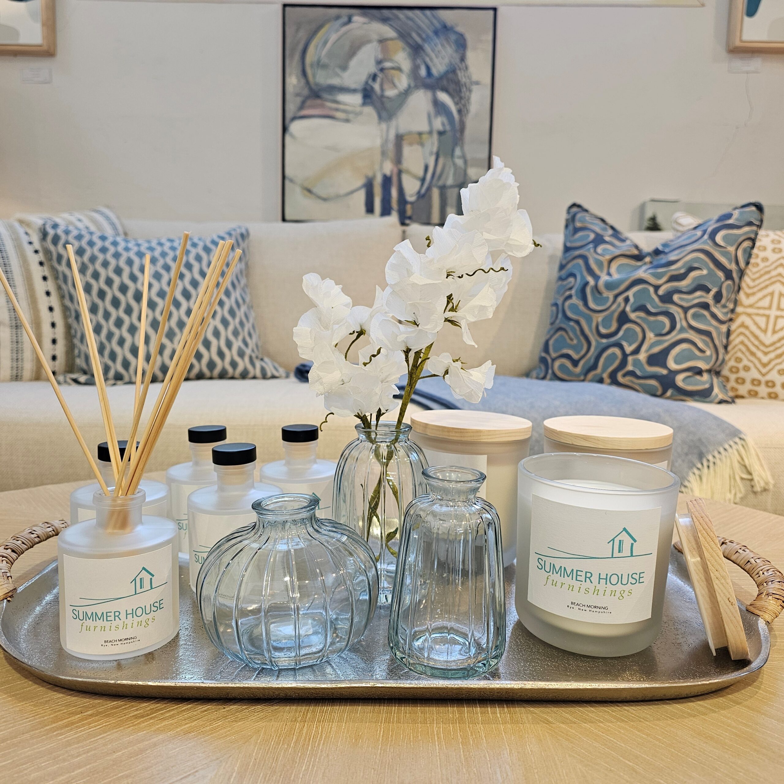 Introducing our Summer House Furnishings diffusers, now available in our signature scent, Beach Morning. Experience the essence of summer in your home!